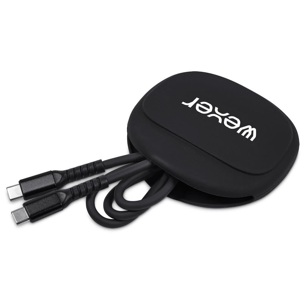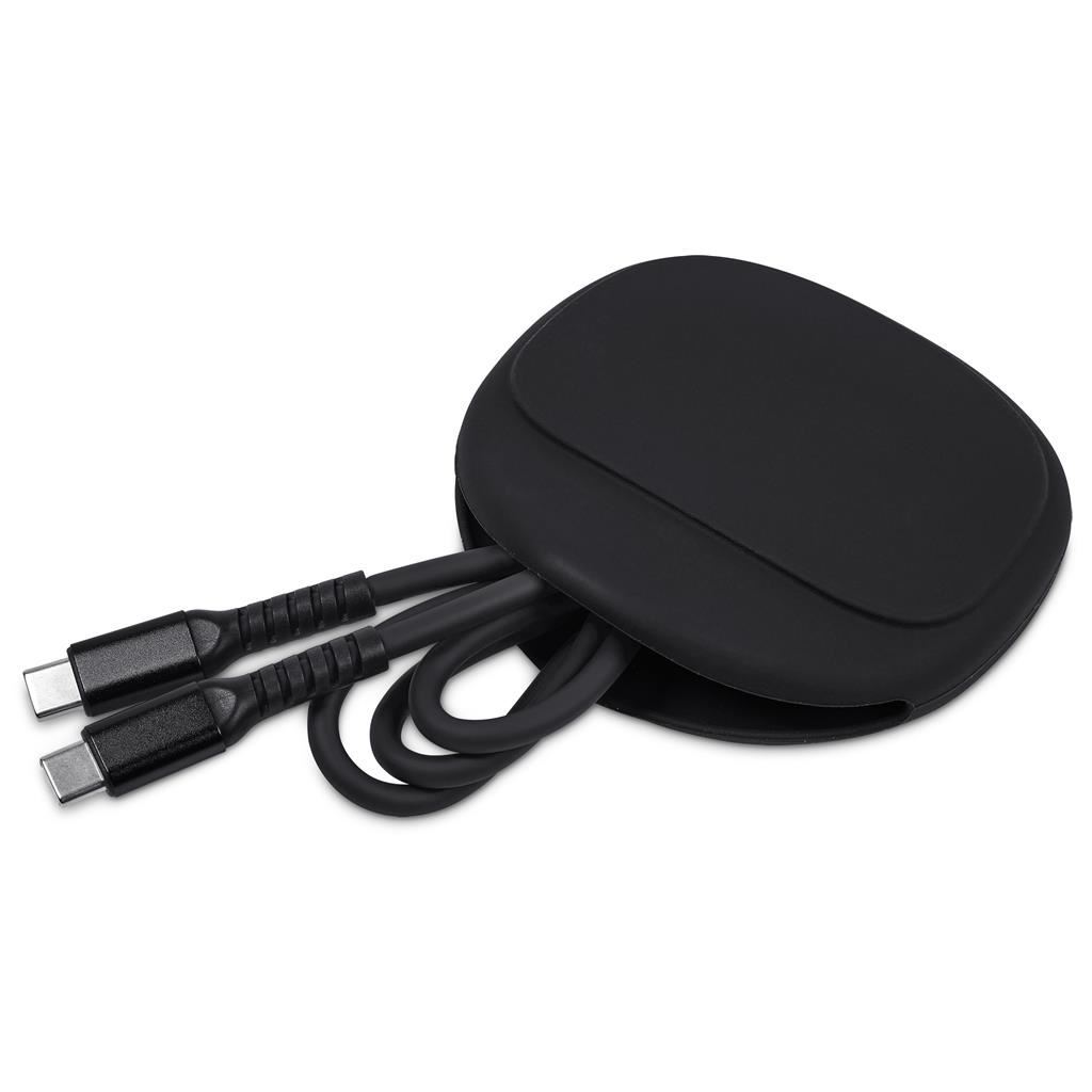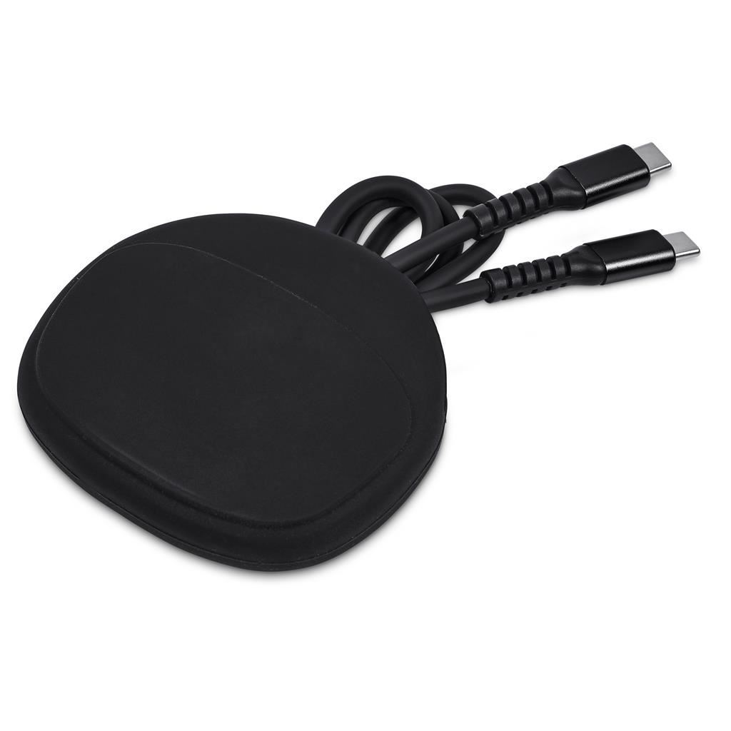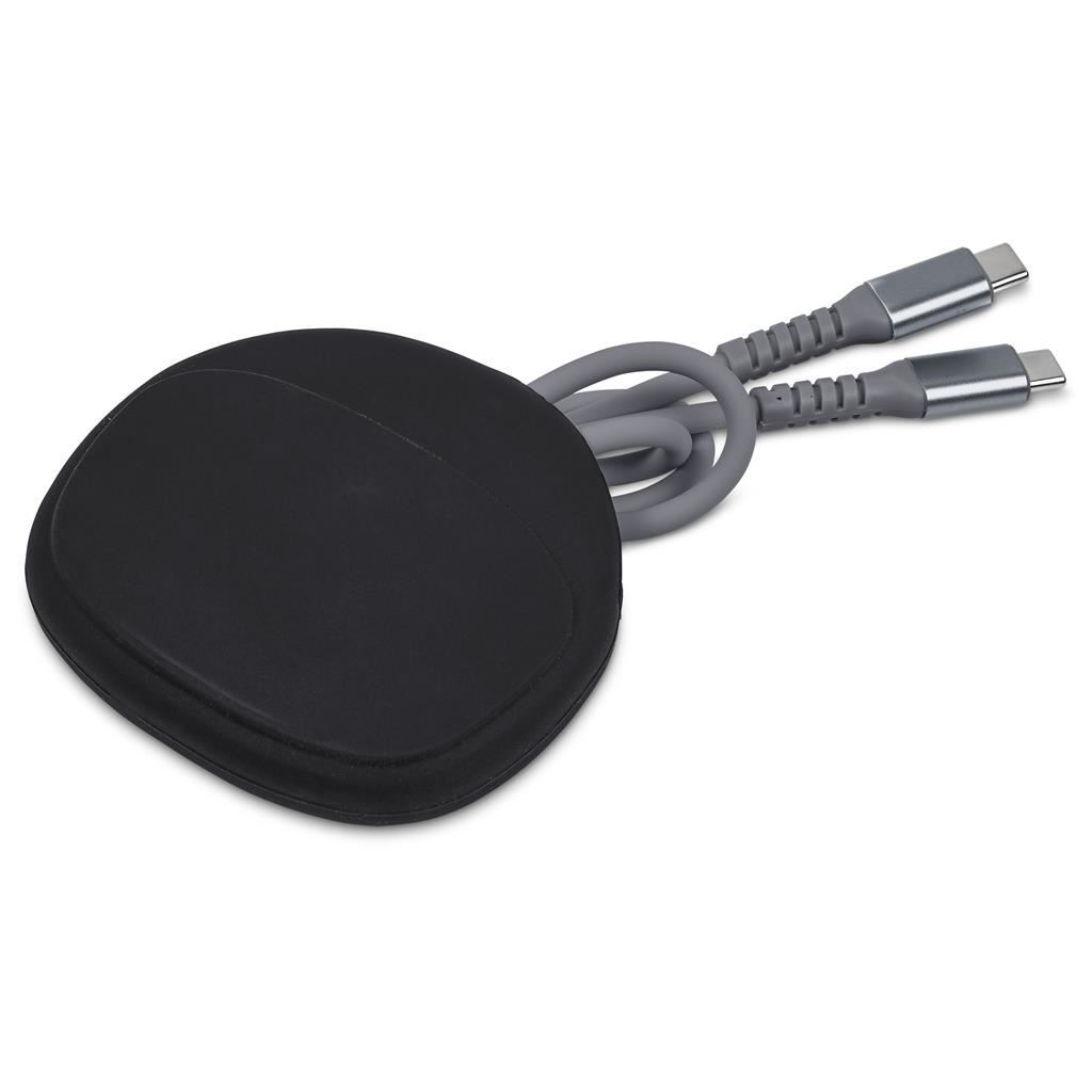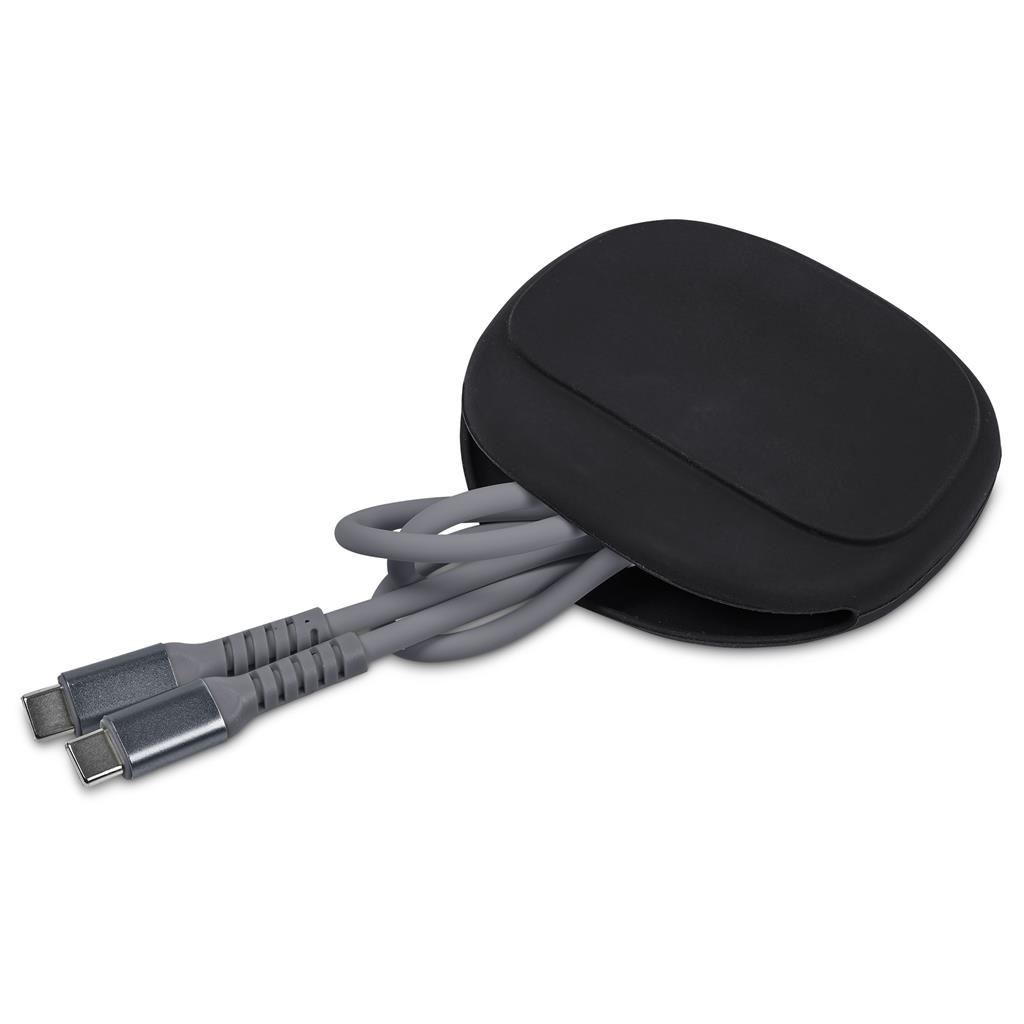 The black silicone pouch keeps your cable neat and compact when travelling, and can be branded with a logo or message.