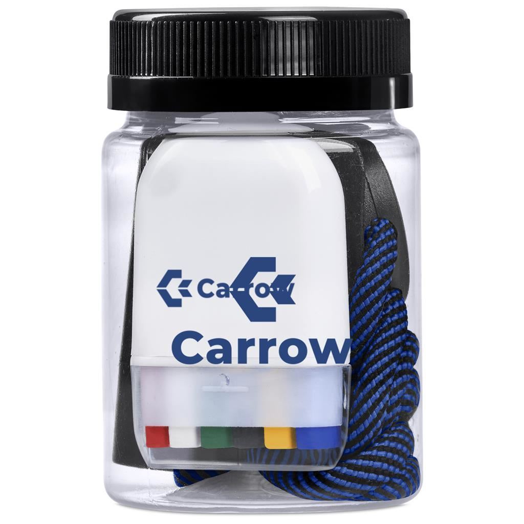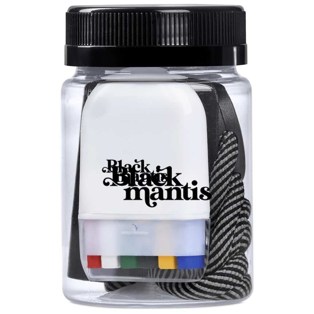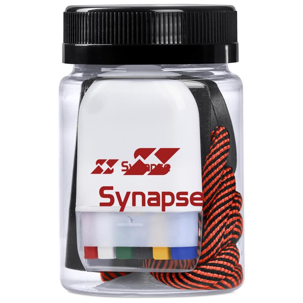 Altitude Vanta Gift Jar A compact, ready-to-gift jar set, filled with a mix of small promotional products. These jars are ideal for desk drops, giveaways, and creating small but memorable brand experiences. The jar contains: Altitude Candystripe Dome Lanyard polyester / 90 ( l ) x 0.5 ( w ) also available in LB ( not shown ) recess for domed sticker: 2.7 ( dia ) Altitude United Face Paint 6 ( l ) x 3.5 ( w ) cm plastic & skin-friendly face paint 6 bold colours: black, white, green, yellow, red, and blue (SA flag colours combination) water-washable formula - removes easily with soap and water. skin-friendly - gentle formulation suitable for most skins compact design - suitable for easy storage and transport Altitude Air-Kiss Lip Balm 7cm x 1.9cm diameter weight: 4.5g vanilla flavoured Jar 8 ( h ) x 5 ( d ) cm plastic bulk packed