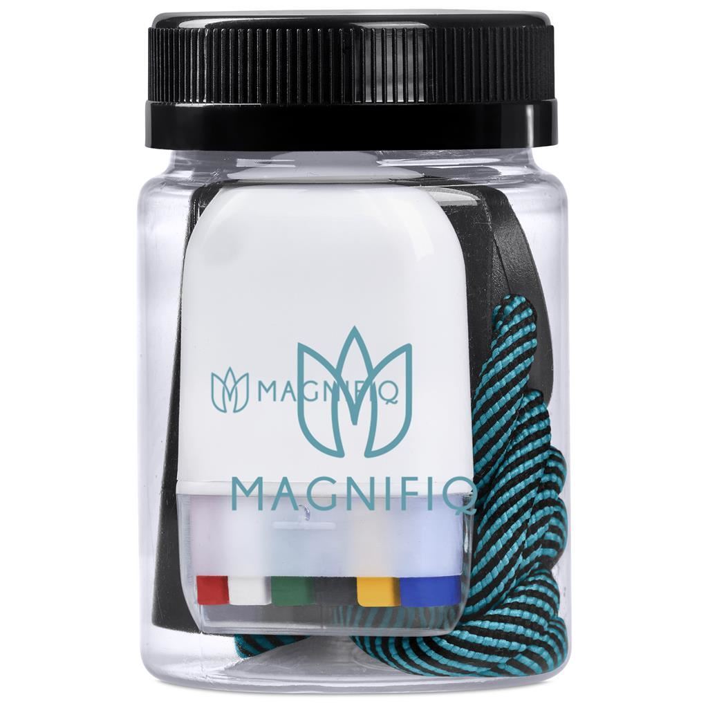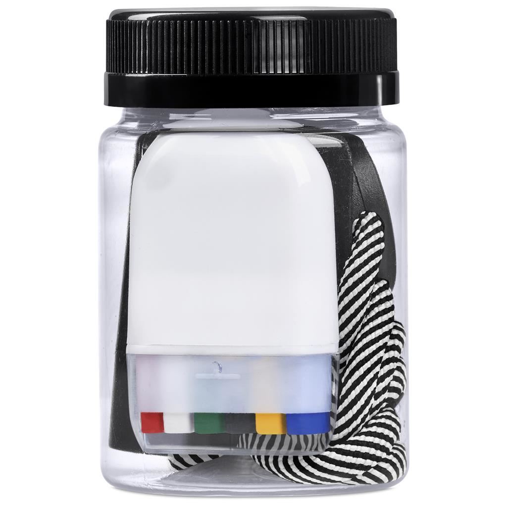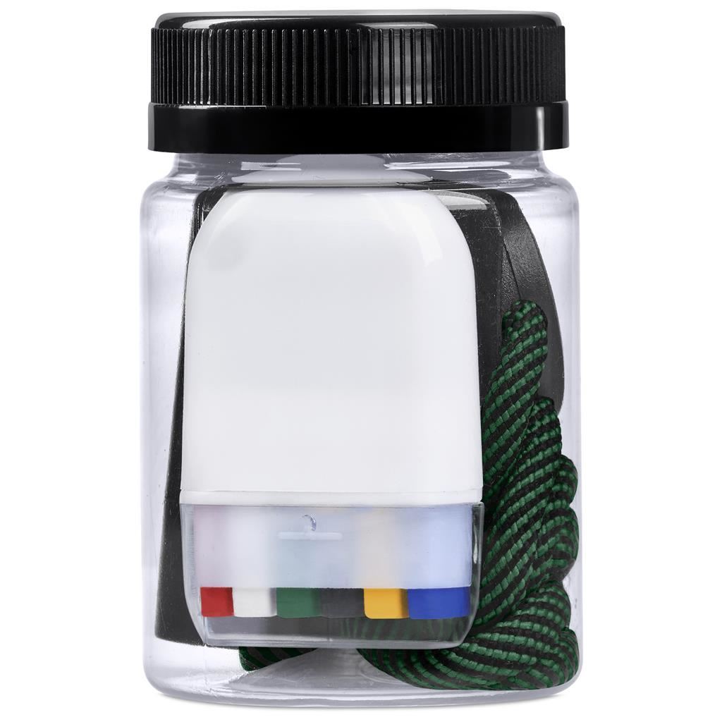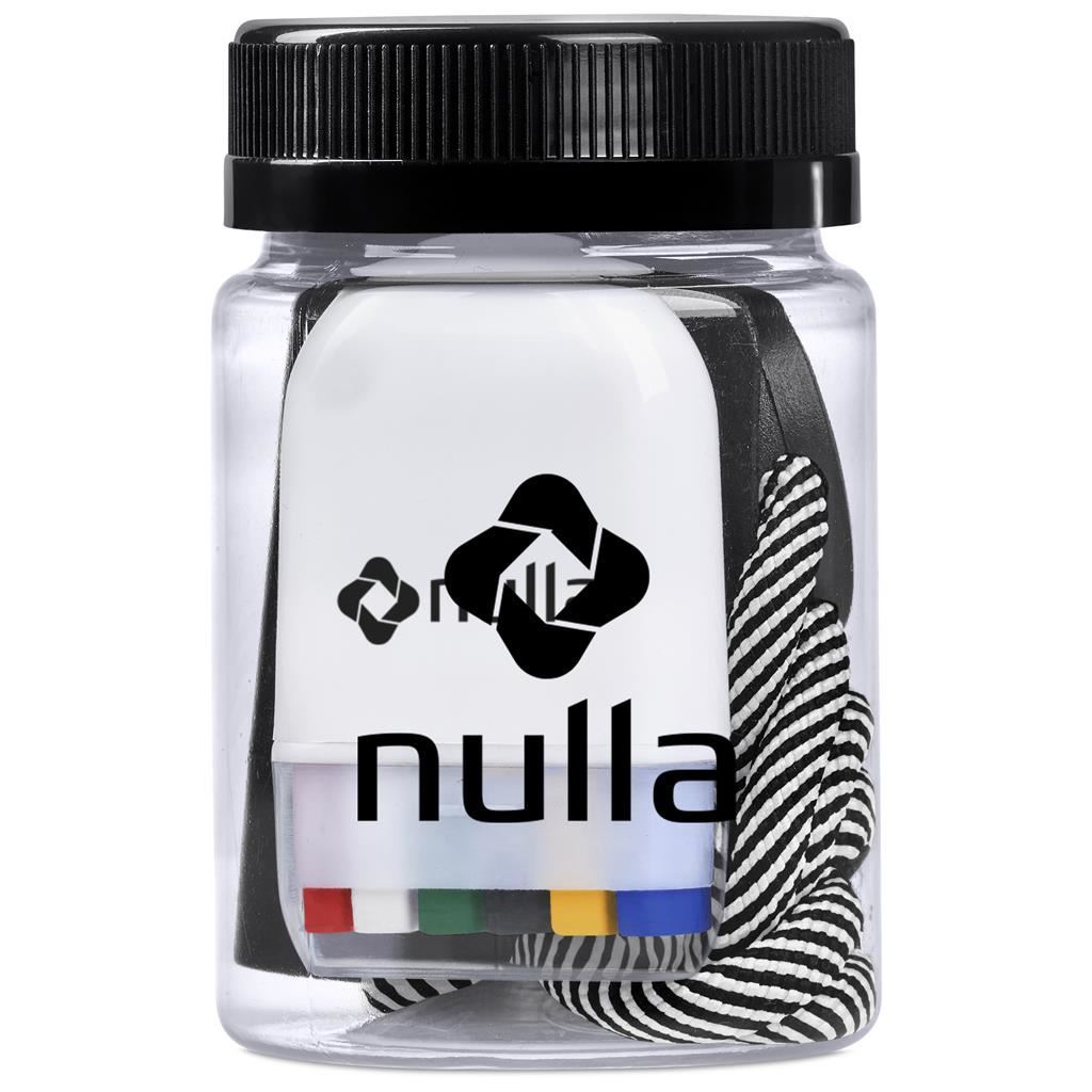 Altitude Vanta Gift Jar A compact, ready-to-gift jar set, filled with a mix of small promotional products. These jars are ideal for desk drops, giveaways, and creating small but memorable brand experiences. The jar contains: Altitude Candystripe Dome Lanyard polyester / 90 ( l ) x 0.5 ( w ) also available in LB ( not shown ) recess for domed sticker: 2.7 ( dia ) Altitude United Face Paint 6 ( l ) x 3.5 ( w ) cm plastic & skin-friendly face paint 6 bold colours: black, white, green, yellow, red, and blue (SA flag colours combination) water-washable formula - removes easily with soap and water. skin-friendly - gentle formulation suitable for most skins compact design - suitable for easy storage and transport Altitude Air-Kiss Lip Balm 7cm x 1.9cm diameter weight: 4.5g vanilla flavoured Jar 8 ( h ) x 5 ( d ) cm plastic bulk packed