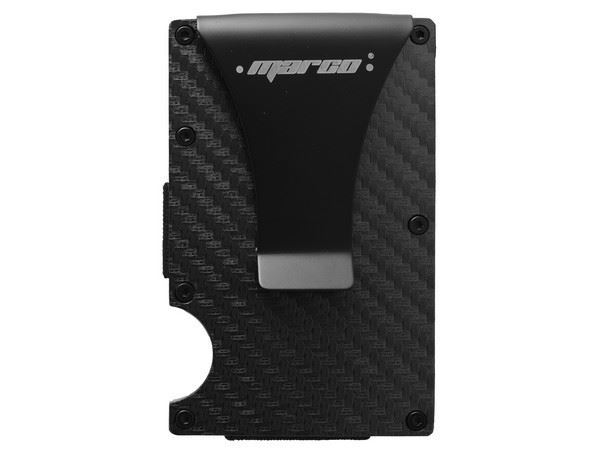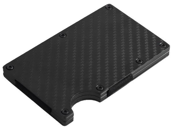 Card Holder & Money Clip Holds 10 to 12 credit cards. With Money Clip. RFID Blocking Protection. Push cards in the indented section to pop out Colour(s):Black Material:Carbon Fibre and Aluminium Size:8.5 (l) x 5.3 (w) x 0.7 (d) Packaging:Box