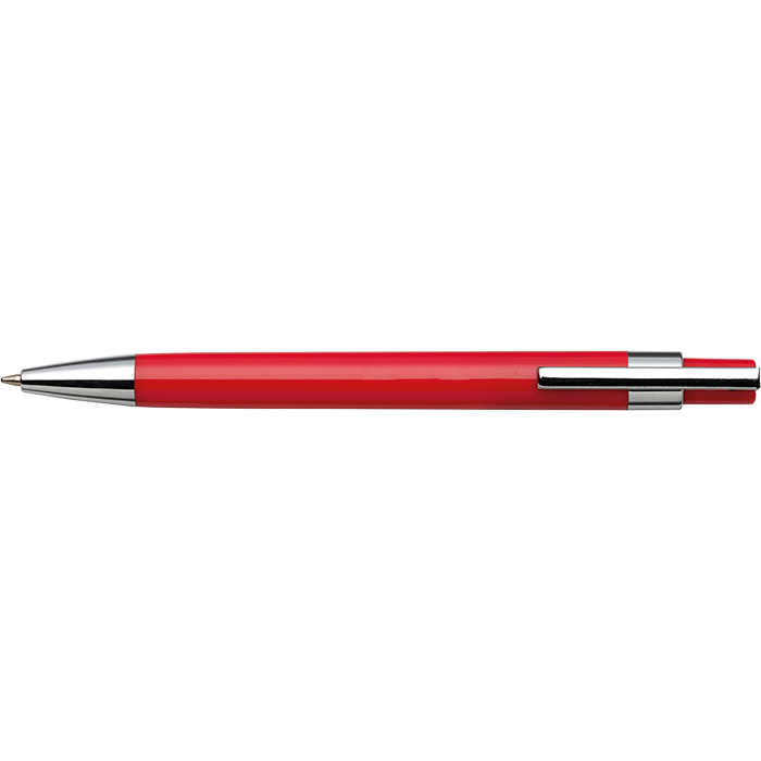 Coloured Barrel Click Pen Plastic ballpoint pen Solid colour body Metal clip Plunge action mechanism Black ink Metal tip
