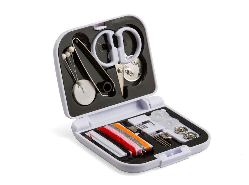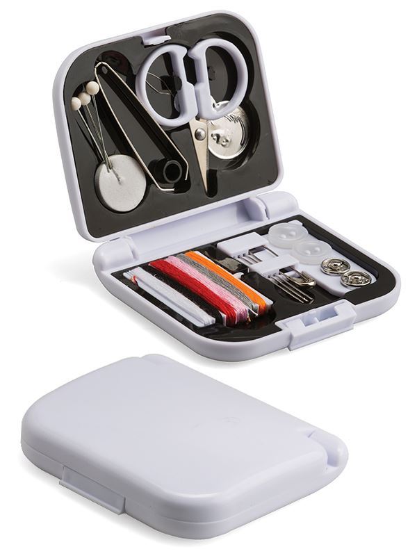 Easy Care Sewing Kit Code: GIFT333 The Easy Care Sewing Kit is the quintessential for the on the go individual. Its compact size makes it easy to travel around with. This item is manufactured from ABS plastic and includes the following features; 3 Pins, tweezers, scissors, needles threader, 6 colour threads, 3 needles, 1 safety pin, 2 white buttons and 2 silver buttons. Specifications ABS Plastic Product Size: 8 (L) x 7 (H) x 2 (W)