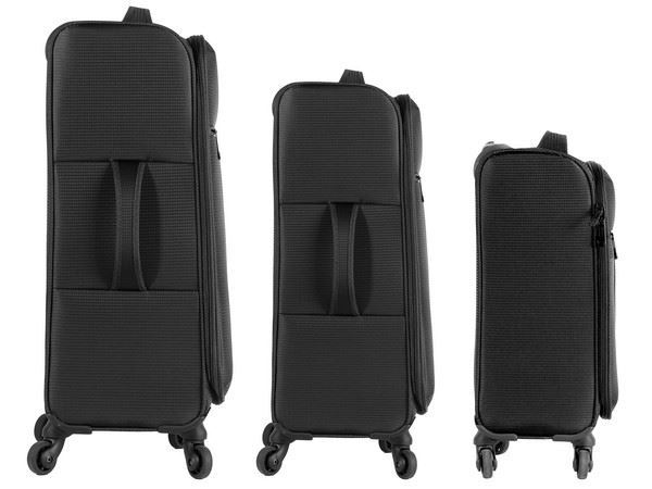 FlexLite Luggage Set BAG Packaging:Stock Box With an ultra-lightweight soft-shell design, these luggage bags are lightweight yet sturdy, offering flexibility without compromising strength. Each bag features a large main compartment with compression straps to secure your items, plus an internal zippered mesh pocket for easy organisation. With 4 x multi-directional wheels, an aluminium telescopic handle, top and side carry handles for easy lifting into overhead compartments and a front zippered pocket for easy access Colour(s):Black Material:600D Polyester Case & 210D Lining & Aluminium Handle Size:50 (w) x 75 (h) x 30 (d)