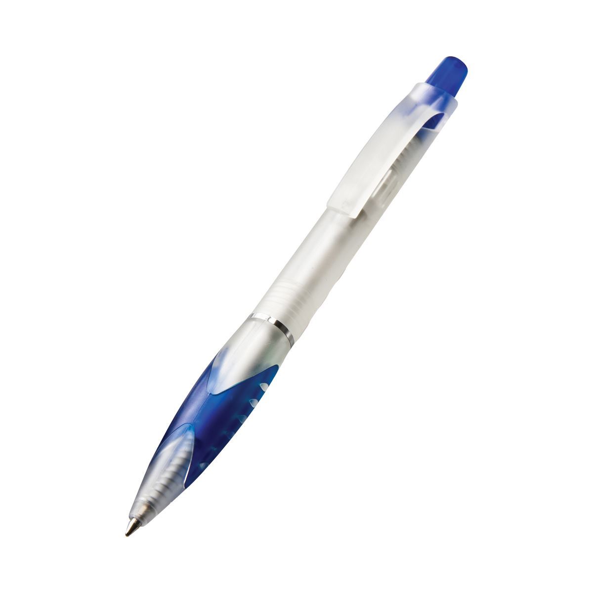 The Gamma Ballpoint Pen is manufactured from durable plastic, this pen features a plastic clicker and barrel for smooth writing. Its sleek design is accentuated by a silver rim near the bottom, adding a touch of elegance to your writing instrument.