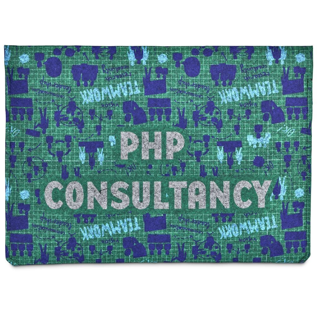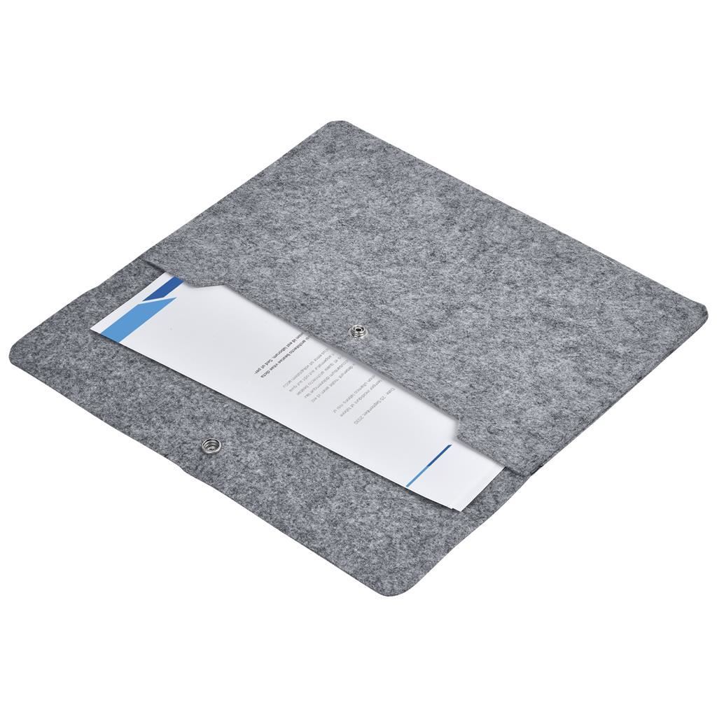 Hoppla Revo RPET Felt Document Holder This product is manufactured in South Africa upon order and incorporates fabric printed in full colour, that are perfectly suited to your requirements. Stay organized with an eco-friendly RPET felt document holder, which is useful for storing papers, notebooks, and more. Custom branded in full color making this a sleek, sustainable promo gift. 26 ( l ) x 35.5 ( h ) cm light grey RPET felt full branding nickel press stud bulk packed pre-printed sample code: SB-HP-192-G pre-production sample code: SG-HP-199-G Due to the nature of grey felt, sublimated prints appear more subdued. The material absorbs more ink than standard fabrics, resulting in softer, less vibrant colors. This is a natural characteristic of the felt and not a printing flaw. Made to order. MOQ - 100 Units Per design