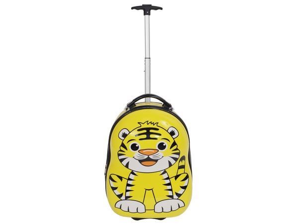 Kids Luggage Bag - Tiger Adorable and practical for kids. Perfect for travel, overnight stays, sleep-overs, weekend trips, sports and school. This cute trolley suitcase is lightweight, which means its easy to pull. With comfortable push button, which makes using the adjustable handle easy. Sturdy cross straps inside the luggage bag keep clothes organised while traveling. Comes with a roomy inner compartment for storing your childs small items Colour(s):Yellow Material:ABS & PC & Aluminium Alloy Size:33 (w) x 43 (h) x 25 (d)