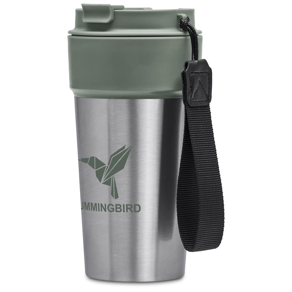 Take your favourite hot beverage on the go with this double-wall tumbler. Featuring a stainless steel outer layer and a BPA-free inner, your drink will stay hotter for longer, and your hand will be protected from the heat. The secure screw-on lid has a drinking port with a cap that can be closed when you’re on the move, and popped open when you wish to sip from it. The finger loop helps to keep the rest of your hand free for carrying other things, like your phone. The loop can be removed should you prefer to use the tumbler without it. The shape is designed to fit snugly into most vehicle drink holders. This tumbler is sure to be used daily - at home, at work, in the car, or on the move - ensuring consistent brand visibility.