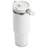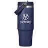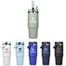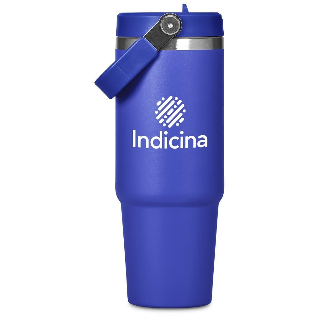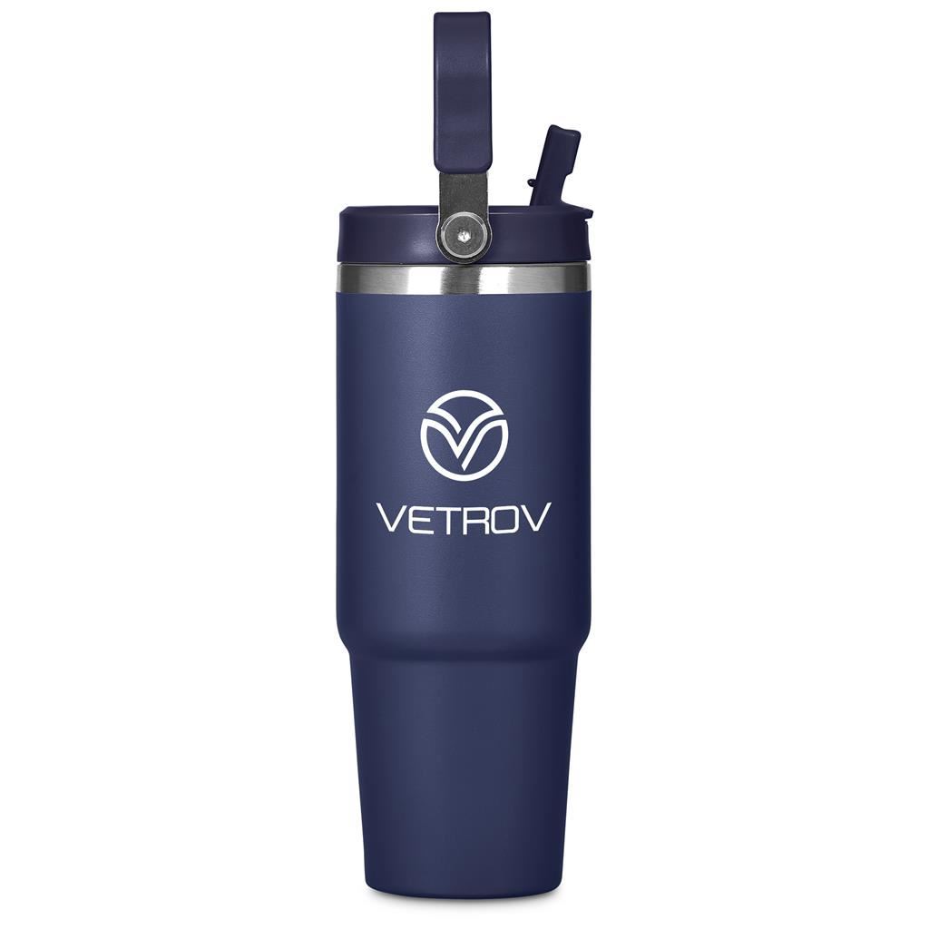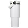 Carry your beverage care-free by the handle of this substantial 900ml tumbler. The stainless steel vacuum construction will keep your chilled beverage cold for hours. The lid has a built-in flip straw, which makes it easy to sip from regularly to stay hydrated. It’s a secure, screw-on, broad-mouth lid, so you can easily load ice into the tumbler. The tapered bottle base is designed to fit into a vehicle drinks holder.