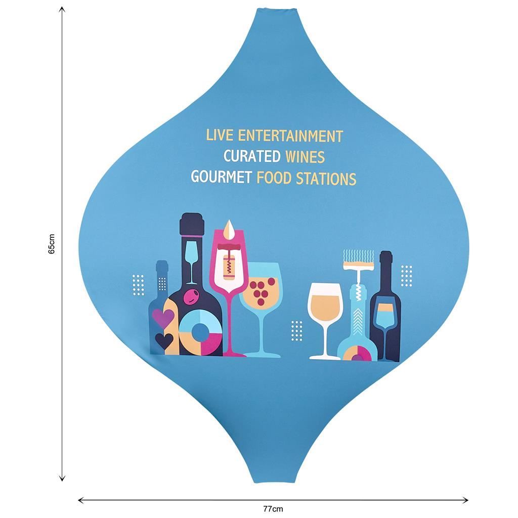 Lantern Banner with Light Weight Cross Base Capture attention from every angle with the Lantern Banner. Its aerodynamic design rotates 360 degrees to maximise visibility and keep your brand in view, even in high-traffic outdoor settings. Lightweight and tool-free, it assembles in minutes for quick, hassle-free event branding. assembled dimensions: (H) 232cm x (W) 86cm full colour digital dye-sublimation print on mechanical-stretch 230g/m2 fabric pole with flex steel, light-weight cross base and pegs, all packaged inside a durable carry bag an aerodynamic design allowing for 360-degree rotation packaged weight of 1 lantern system: 4.67kg skin code: FB-AM-29-D