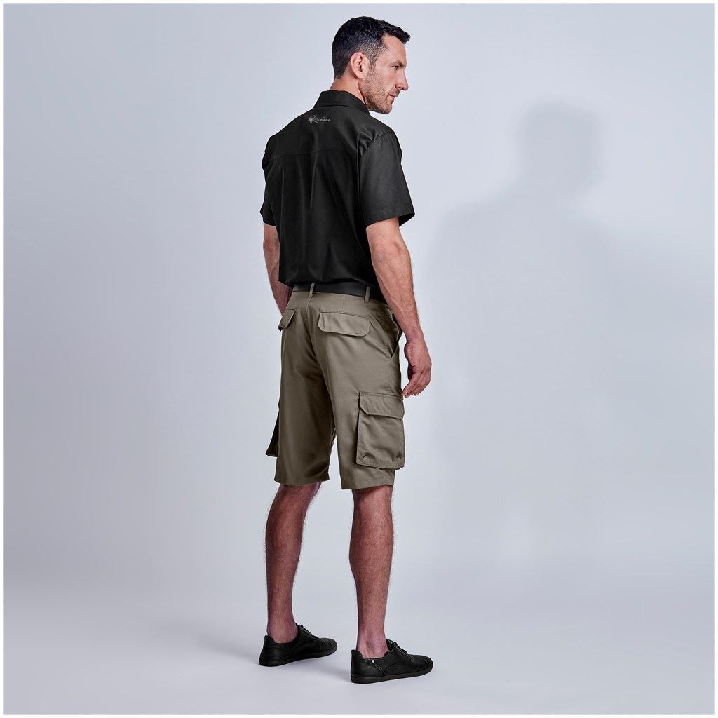 CODE: ALT-HLD Mens Highlands Cargo Shorts 245g/m² 65% polyester, 35% cotton, brushed twill slanted side pockets billow cargo side pockets two back pockets with button down flap Polycotton: A low maintenance blend that is breathable, crease resistant & colourfast. It’s less prone to piling & shrinking. Manufactured in the Southern African Development Community (SADC). Increasing economic development & growth in 16 countries in SA.