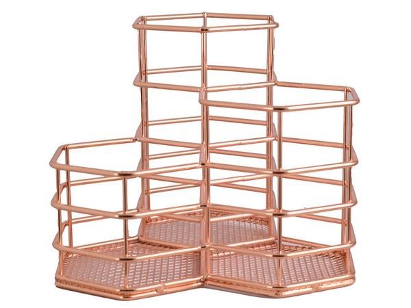 Noted 3 Piece Desk Stationery Holder Each stand is 8cm wide Colour(s):Rosegold Material:Iron Stand Size:14.3 (w) x 11.6 (h) x 14.3 (d) Packaging:Box Unbranded only