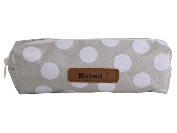 Noted Polkadot Pencil Case With main zip compartment Colour(s):Grey & White Material: FabricSize: 20.4 (l) x 6 (w) x 4.2 (d) Packaging:Cellophane Packet