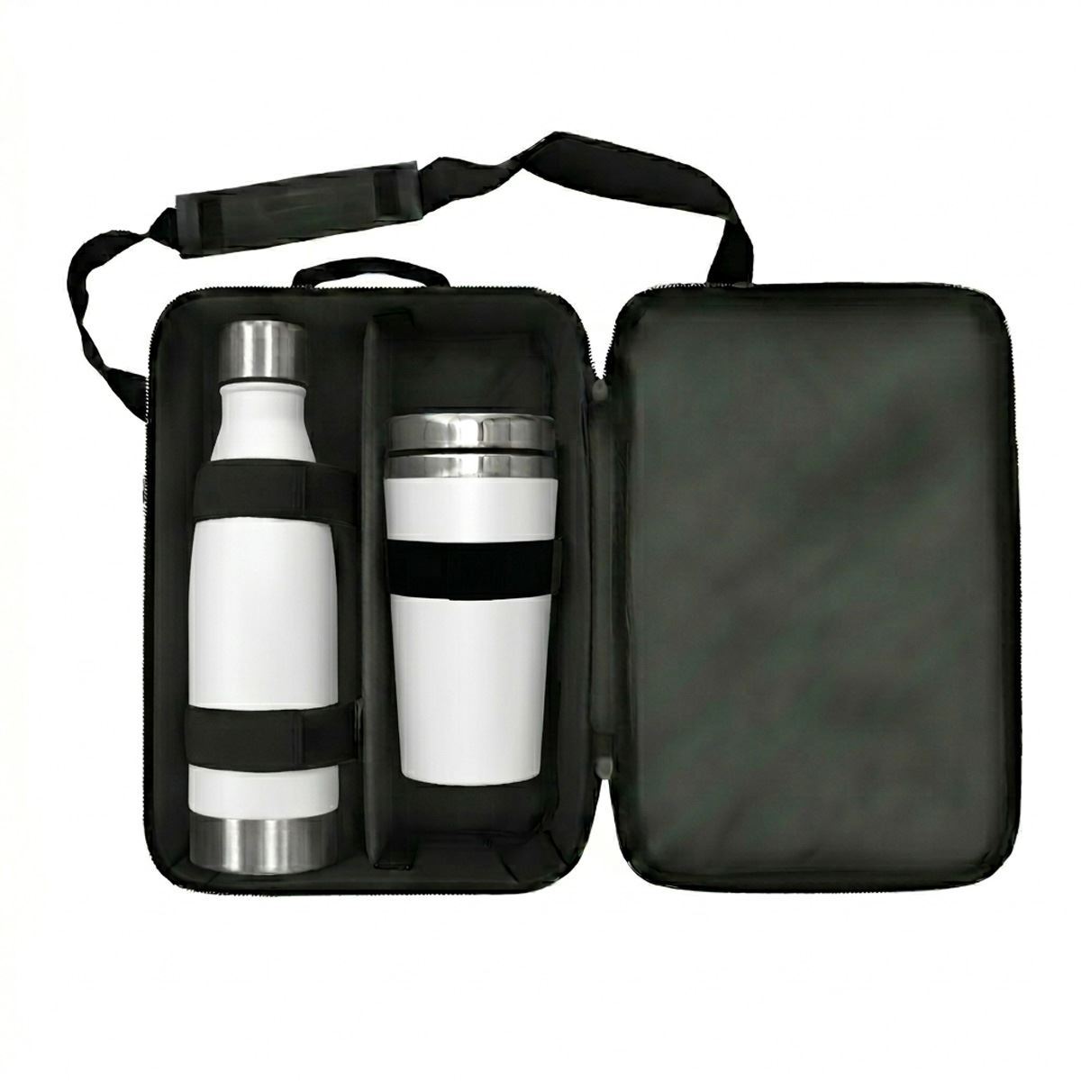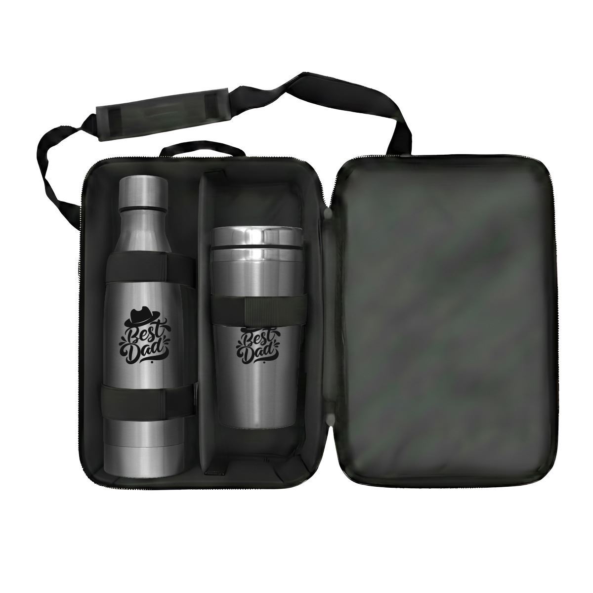 Platinum Executive Gift Set Code: FLSKSET26316 A premium executive drinkware set designed for high-end corporate gifting and standout brand visibility. Product features: Luray 500ml Flask: Stainless steel flask designed for reliable temperature retention, offering a sleek and durable solution for everyday executive use Insulated Tumbler: Modern tumbler designed to keep beverages hot or cold, featuring a secure lid for convenient on-the-go use Reusable Carry Pouch: Presented in a protective pouch for secure storage, portability and premium gifting presentation Executive application: Ideal for corporate gifting, client engagement, executive travel kits and high-value promotional campaigns Care instructions: Not suitable for microwave or dishwasher use Specifications Stainless Steel, PP Plastic and Polyester Product Size: 30cm (W) x 38cm (H) x 12cm (D)