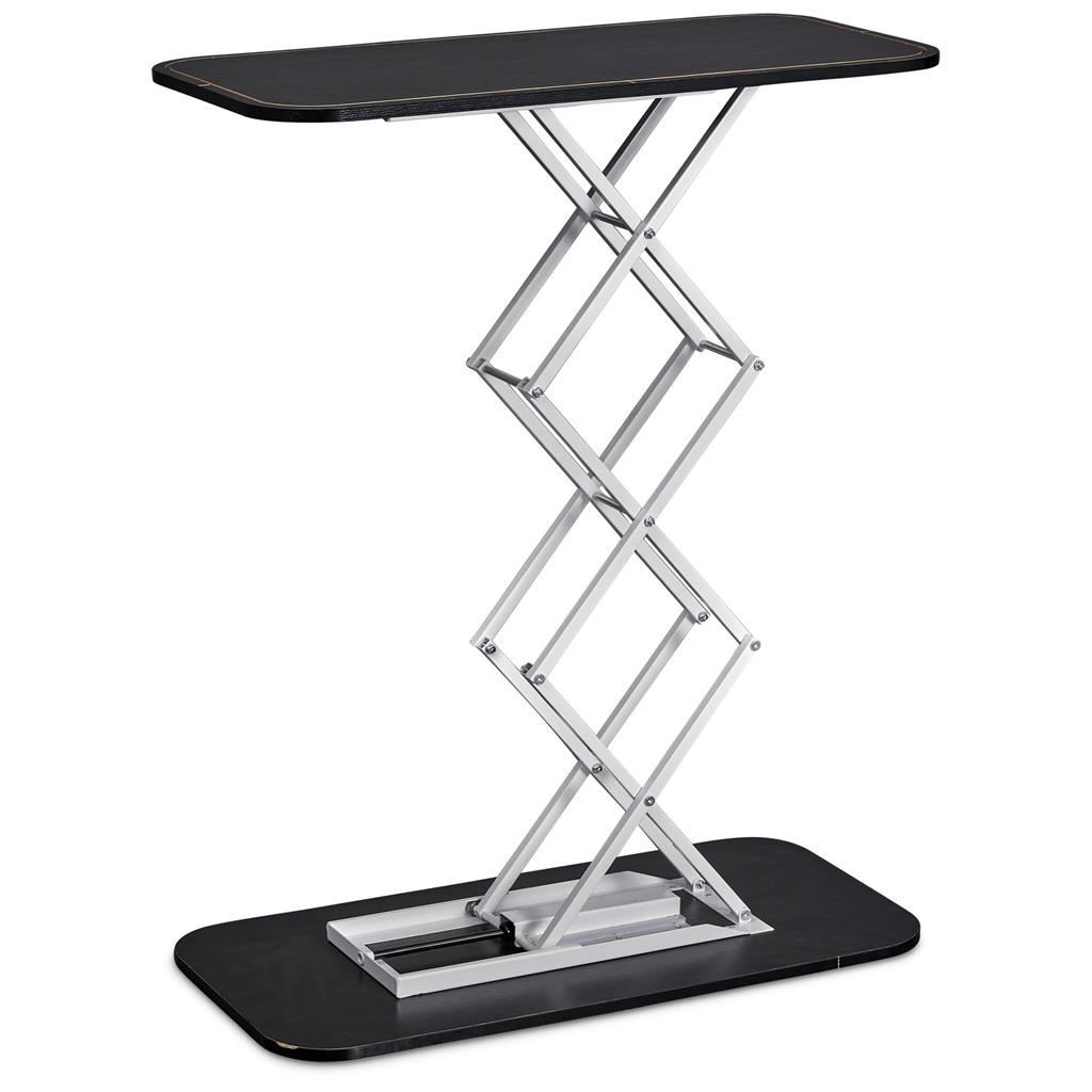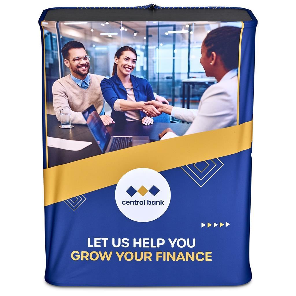 Pop-Up Hydraulic Fabric Counter The Pop-Up Display Table is an ideal solution for creating a professional workspace at trade shows & events. Lightweight and portable, it features a steel hydraulic scissor mechanism that expands smoothly in seconds and locks securely into place, delivering a stable and polished surface for product displays & client engagement. When your event is done, the table is pressed flat and stores conveniently in a durable carry bag for effortless transport. assembled dimensions: (L) 80cm x (W) 40cm x (H) 97cm vibrant full colour digital dye-sublimation print on 230g/m2 fabric fabric with zip closure and silicone beading at the top and base durable steel frame with a carry bag included black press board countertop packaged weight of 1 counter system: 10.9kg skin code: CB-AM-4-D