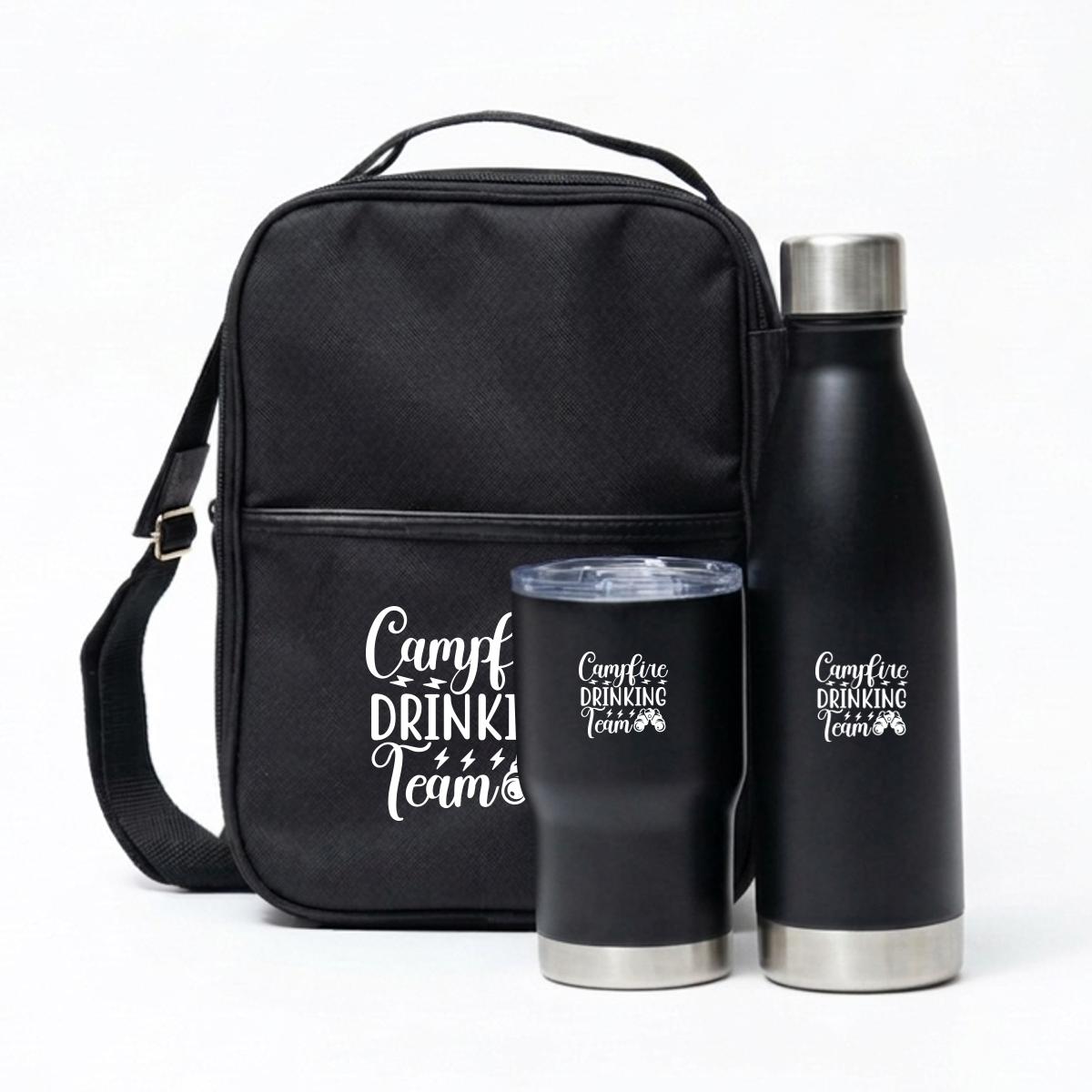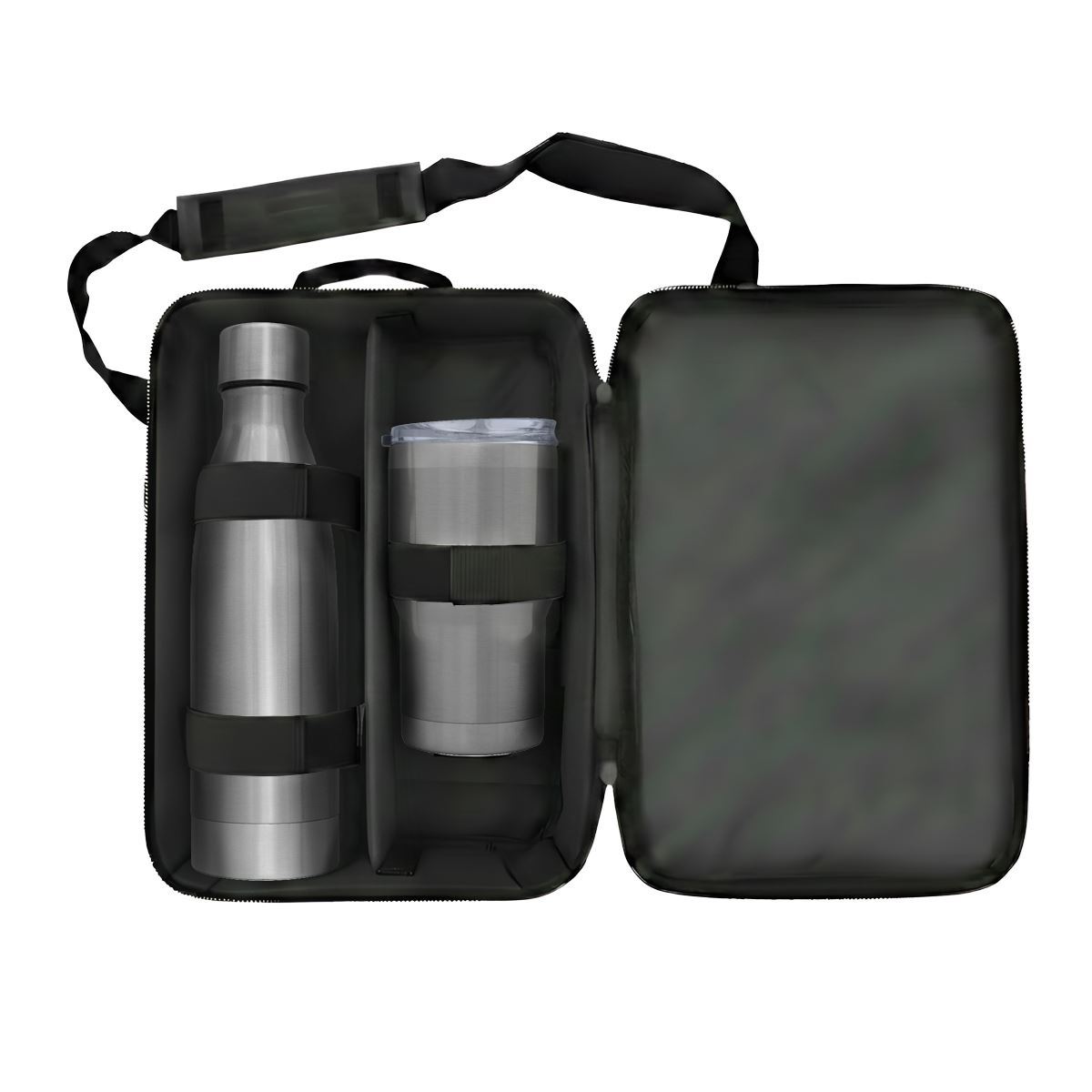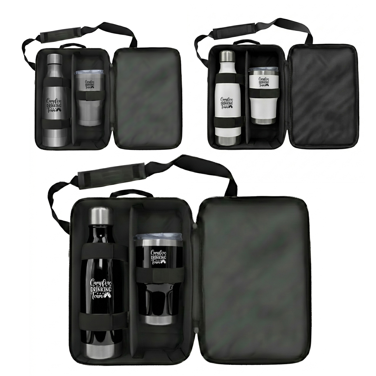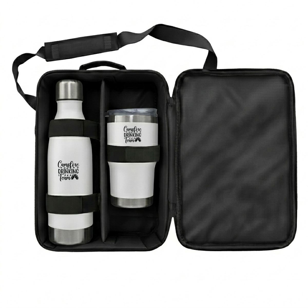 Premier Bottle & Tumbler Set Code: FLSKSET26315 A premium drinkware set designed for executive gifting, modern travel and elevated brand visibility. Product features: Luray 500ml Flask: Stainless steel flask designed for reliable temperature retention, offering a sleek and durable solution for everyday use Insulated Tumbler: Modern tumbler designed to keep beverages hot or cold, with a secure lid for convenient on-the-go use Reusable Carry Pouch: Presented in a protective pouch for secure storage, portability and premium gifting presentation Executive application: Ideal for corporate gifting, client engagement, travel kits and high-end promotional campaigns Care instructions: Not suitable for microwave or dishwasher use Specifications Stainless Steel, PP Plastic and Polyester Product Size: 30cm (W) x 38cm (H) x 12cm (D)