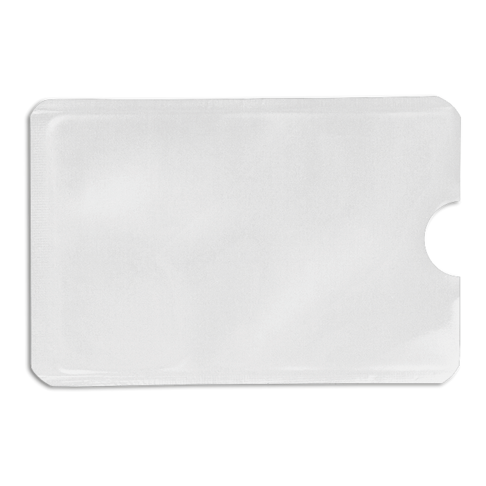 RFID Aluminium Foil Card Holder Size: 9 x 6cm Material: Aluminium foil/PE Aluminium RFID card holder for a single card Designed to block RFID readers from scanning your bank details FABRIC Plastic