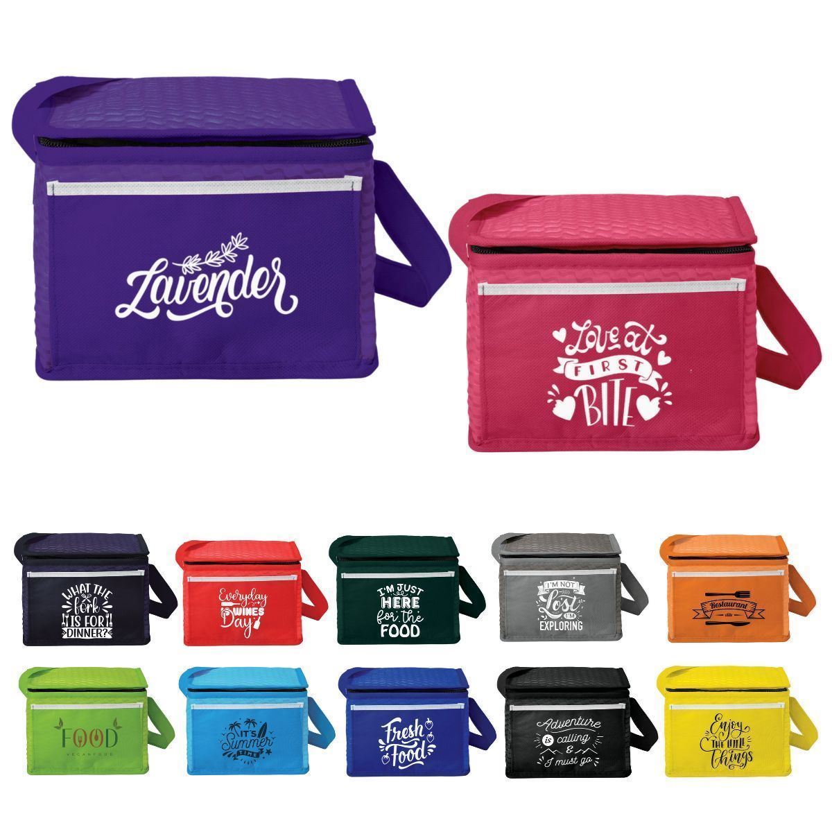 The Ridge Cooler with its bright and vibrant colours and textured material, is definitely A HIT amongst consumers. Manufactured from 80gsm non woven material this cooler offers a zippered main compartment, a front slip pocket for your additional easy-to-reach storage needs and a strong, shoulder strap that completes your everyday favourite cooler.