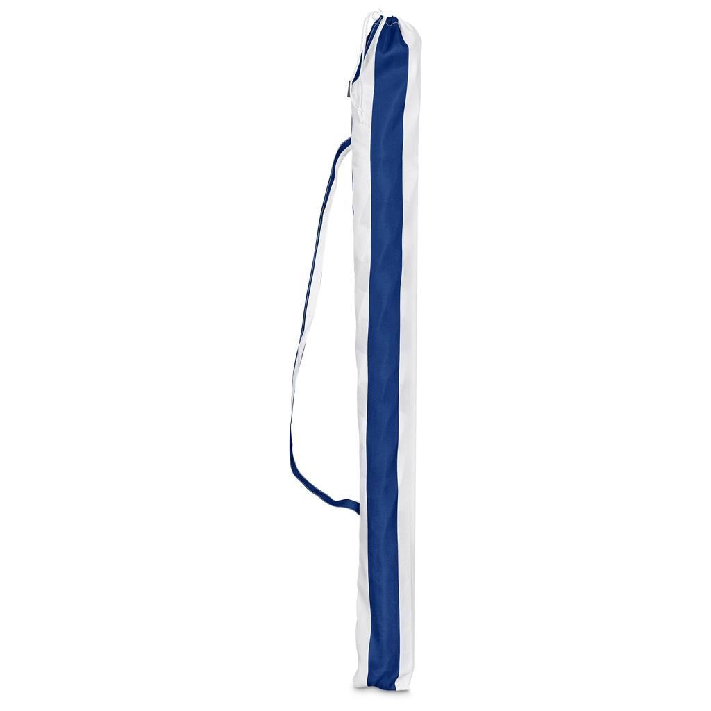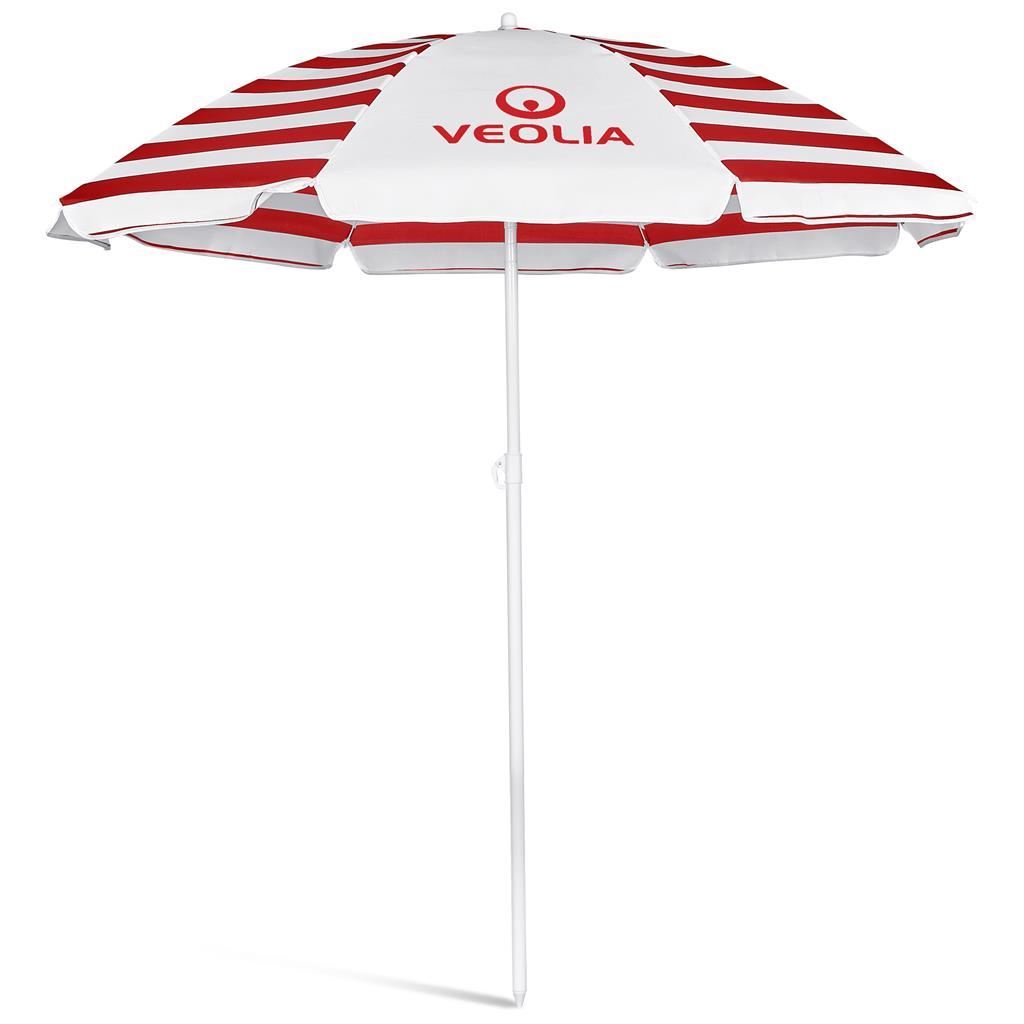 Keep cool and shaded in style with this coloured striped beach umbrella. Designed with a sturdy steel pole and a convenient tilt function, it allows you to adjust the shade as the sun moves throughout the day. The vibrant striped canopy adds a cheerful, summery look, while the durable fabric provides reliable sun protection. Includes a matching cover with a carry handle, making it easy to store and transport to the beach, park, or any outdoor outing. This umbrella has been designed to proudly display your logo, with one panel in plain white, to facilitate screen print branding.
