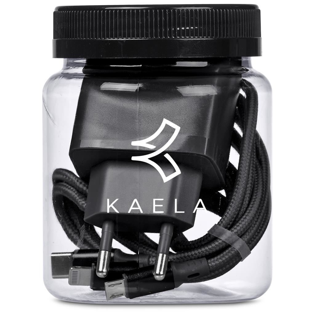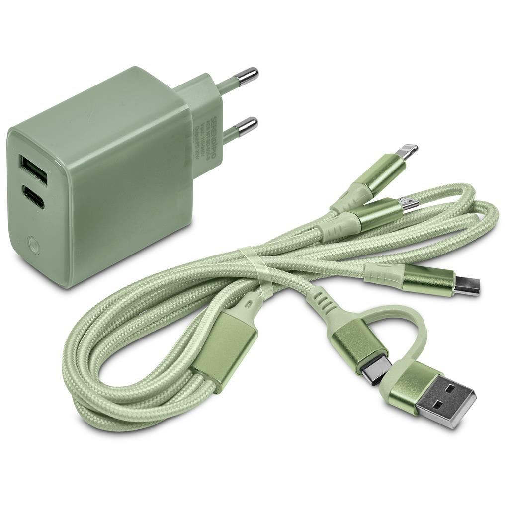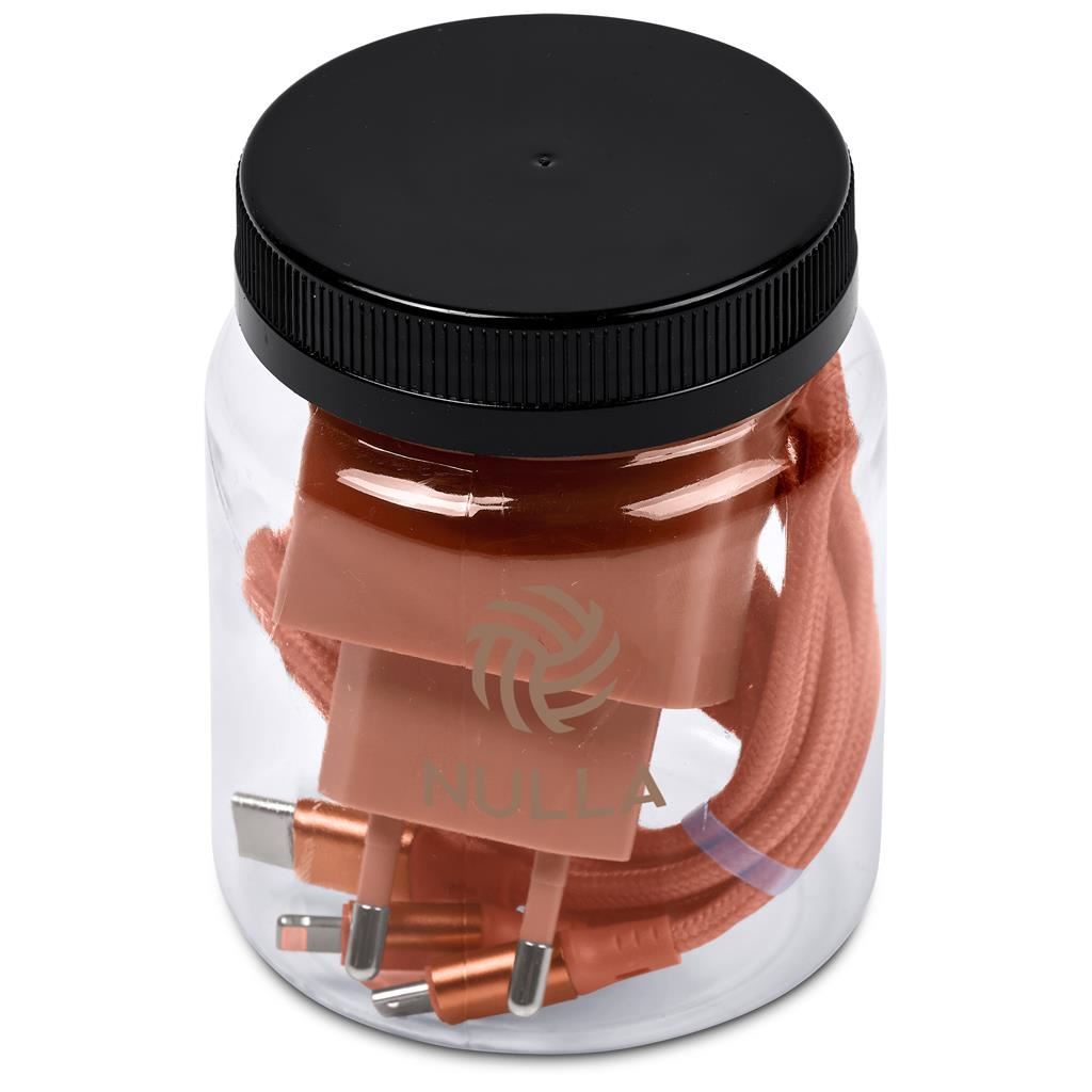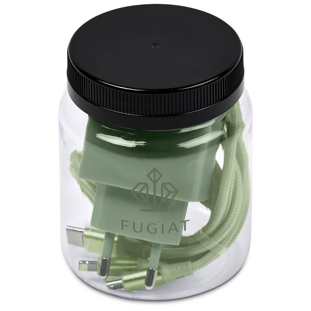 Serendipio Tenby Tech Set A matching fast wall charger and a fast-charge multi-cable are combined in a plastic jar that can be branded with a logo or message, making it a delightful and useful desk drop or promotional gift. Serendipio Berkshire Fast Wall Charger (MT-SD-505-B): 8.4 ( l ) x 4.7 ( w ) x 2.7 ( h ) cm plastic & steel 20W GAN adaptor with LED indicator input: 110 - 240V, 50/60 Hz, 1.0A max type-C output : 20W (max): 5V/3A, 9V/2.22A, 12V/1.67A USB-A output: 18W (max): 5V/3A, 9V/2A, 12V/1.5A part of a range of fashionable Serendipio technology products Serendipio Lancashire Fast Charge Multi-Cable (MT-SD-506-B): 120 ( l ) cm nylon & steel USB-A & Type-C connectors on one end and Type-C, Micro, and Lightning connectors on the other end. Type-C input to Type-C output: 60W (max): 20V/3A Type-C input to Lightning output: 10W (max): 5V/2A Type-C input to Micro output: 10W (max): 5V/2A USB-A input to Type-C output: 10W (max): 5V/2A USB-A input to Lightning output: 10W (max): 5V/2A USB-A input to Micro output: 10W (max): 5V/2A Jar: 9 ( h ) x 6 ( d ) cm plastic bulk packed