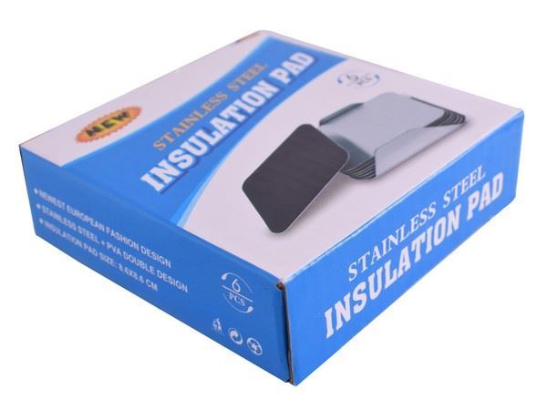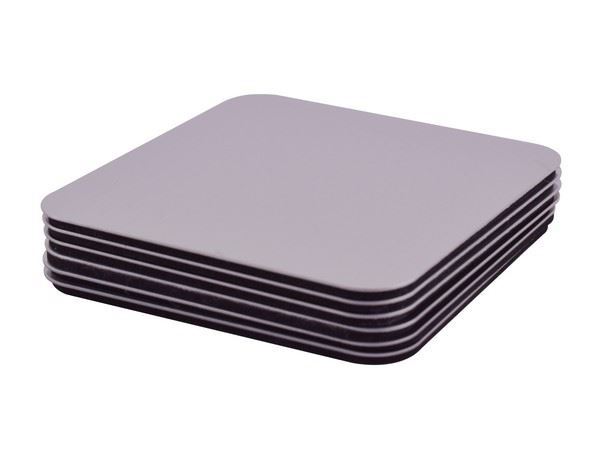 S/S Coaster Set [6-Piece] Colour(s):Silver Material:Stainless Steel Size:8.5cm (diam) - each coaster Includes 6 x Coasters and 1 x Base. With non-slip foam base Packaging:Gift Box Excludes Branding