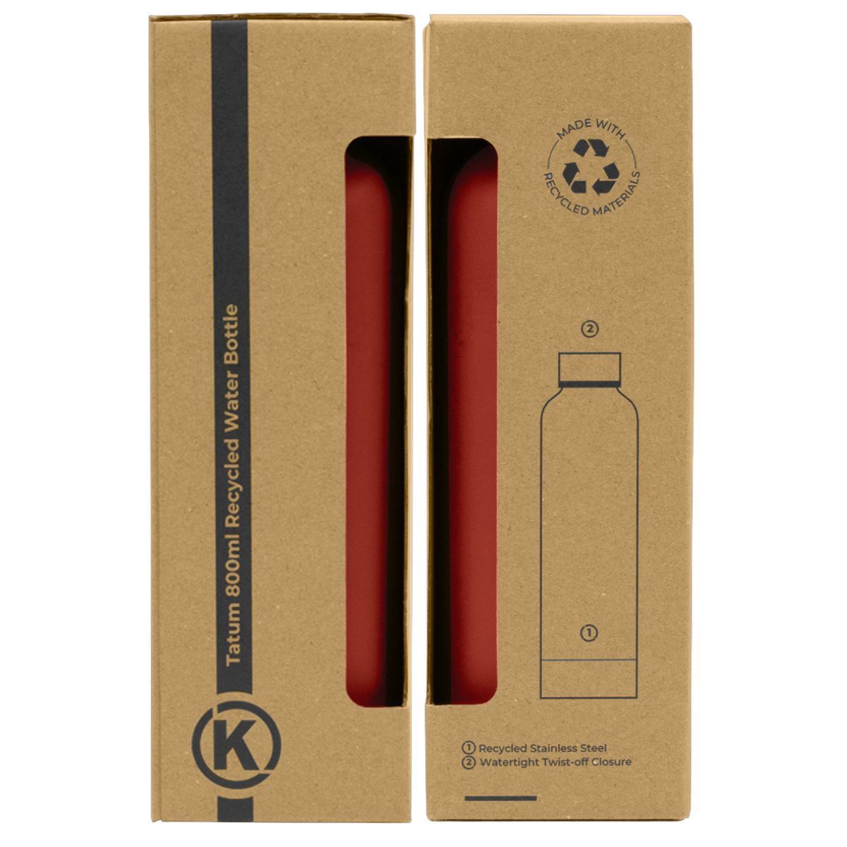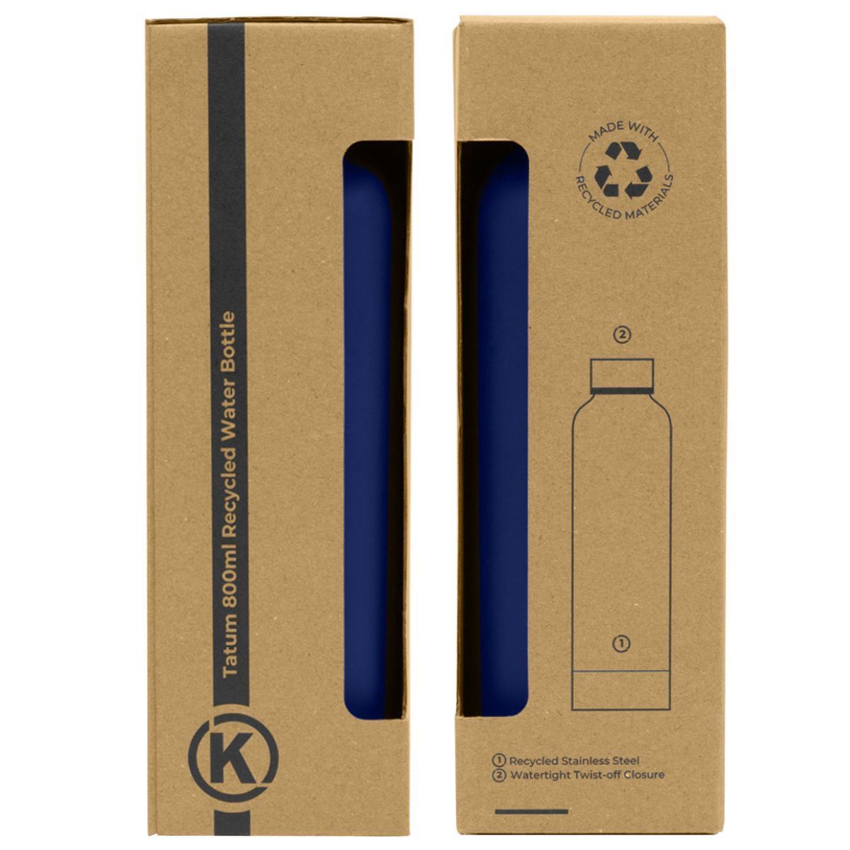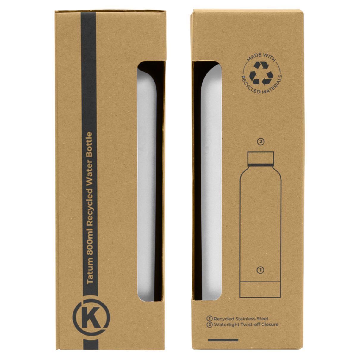 Tatum 800ml Recycled Water Bottle 800ml water bottle combining sleek design with practical functionality Crafted from durable stainless steel and PP plastic Lightweight single-wall construction for easy portability Vibrant matte finish for a modern, stylish look Stainless steel and PP screw cap with internal seal to prevent leaks Perfect for on-the-go hydration Not microwave or dishwasher safe Stainless Steel: A strong, corrosion-resistant material that ensures long-lasting performance and a premium feel PP (Polypropylene): A lightweight, BPA-free plastic known for its durability and safety Single-Wall Construction: Keeps the bottle lightweight and easy to carry, ideal for daily hydration
