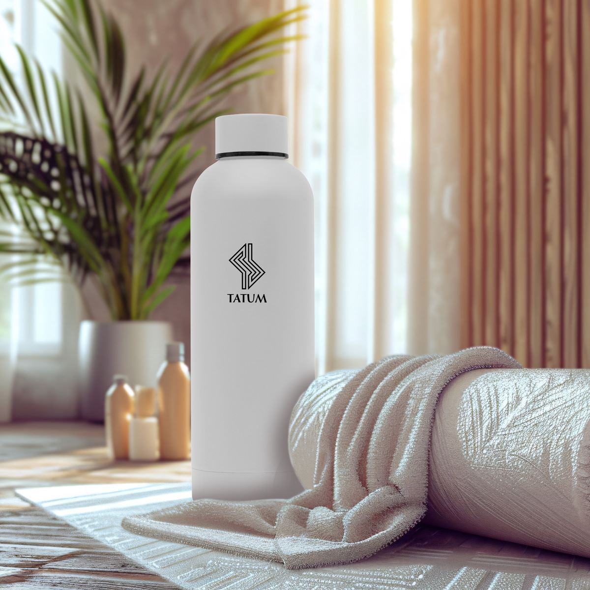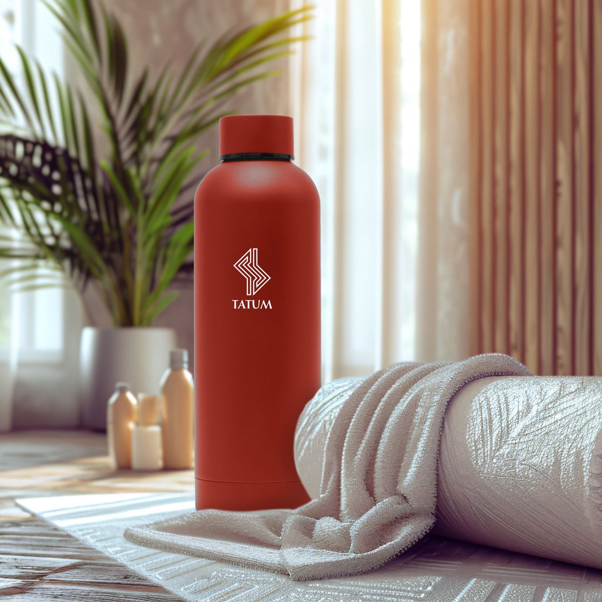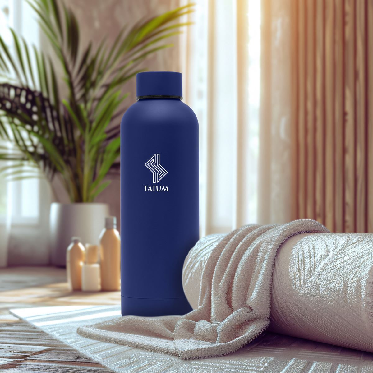 Tatum 800ml Recycled Water Bottle 800ml water bottle combining sleek design with practical functionality Crafted from durable stainless steel and PP plastic Lightweight single-wall construction for easy portability Vibrant matte finish for a modern, stylish look Stainless steel and PP screw cap with internal seal to prevent leaks Perfect for on-the-go hydration Not microwave or dishwasher safe Stainless Steel: A strong, corrosion-resistant material that ensures long-lasting performance and a premium feel PP (Polypropylene): A lightweight, BPA-free plastic known for its durability and safety Single-Wall Construction: Keeps the bottle lightweight and easy to carry, ideal for daily hydration