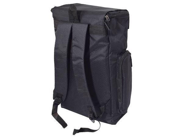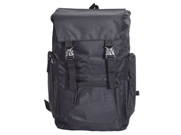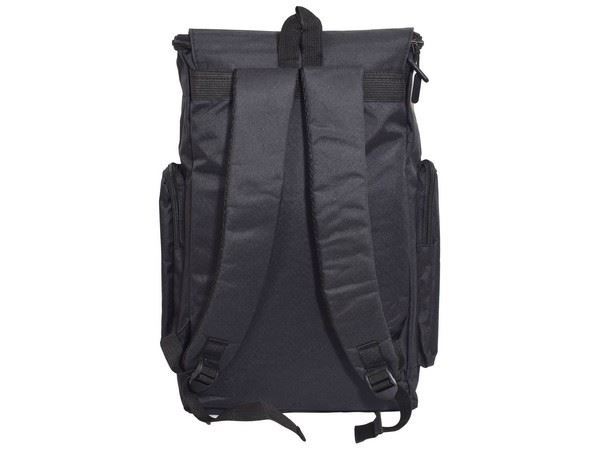 Material folds over the top of the bag and clips closed. With Main Padded Zip Compartment and Inner Padded Divider. With Front Zip Pocket. With 2 Padded Zip Side Pockets. Carry Handle and Padded Adjustable Shoulder Strap