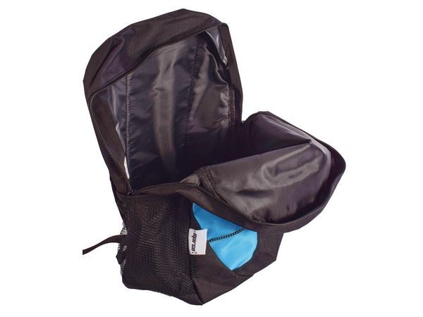The backpack features a spacious main compartment for books, documents, or other essentials, along with a second front compartment for smaller items like your wallet, keys or Cell Phone, with a headphone and audio cable outlet allowing you to listen to music without taking your phone out the backpack. Additionally, it includes two side mesh pockets, perfect for carrying water bottles or other accessories, and a front elastic cord for added versatility. Designed with a sleek black and blue colour scheme, the Urban Trek Backpack combines functionality with a modern look. Whether you are heading to class, work, or exploring the city, the backpack is ready to go wherever you do.