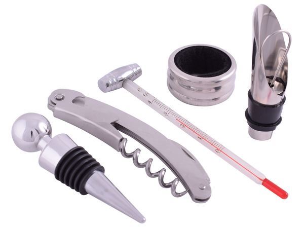 Includes: Waiters Friend, Wine Stopper, Thermometer, Drip Collar and Wine Pourer