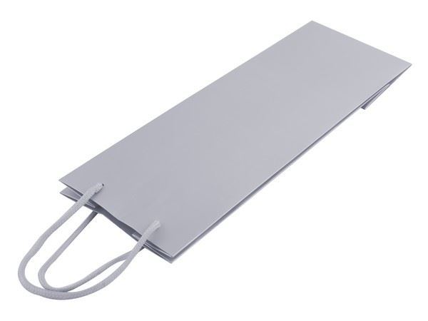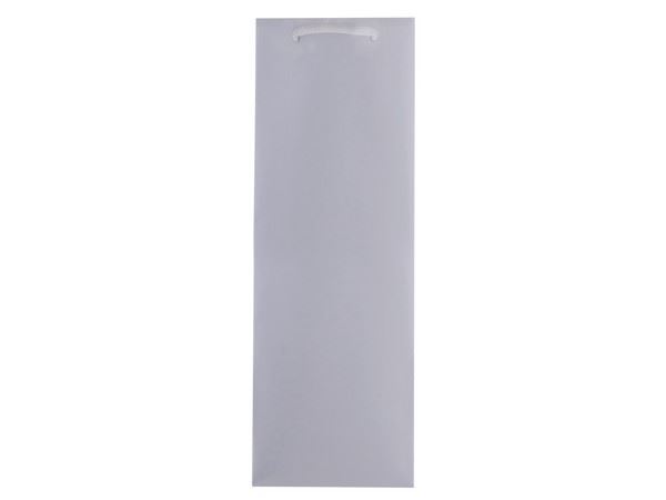 Wine Gift Bag The elegant gift bag is perfect for presenting wine, champagne, or other bottled gifts. It fits most standard-sized bottles comfortably and the sleek design adds a touch of sophistication to any occasion, whether it?s a birthday, wedding, or holiday celebration.Colour(s):Silver Material: 210g/gsm Cardboard Size:12 (w) x 36 (h) x 9 (d)